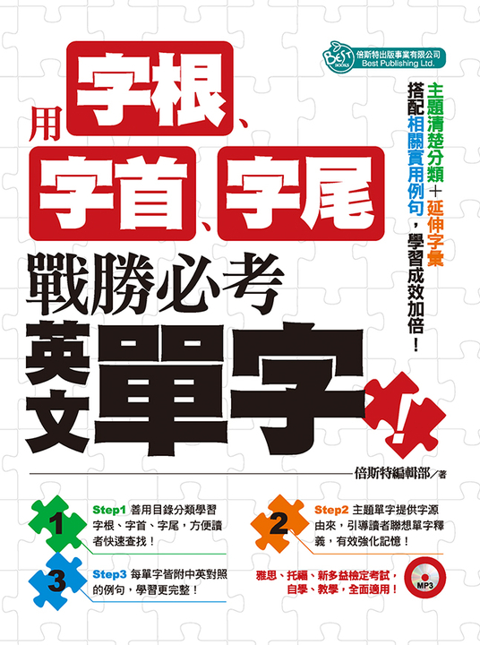 本書提供系統性的拼字方法,並以相同根音串聯成有聲的小故事,利用故事將同主題單字變成記憶口訣,這是語言學家公認的有效記憶單字方式之一。然而對於現代忙碌的人來說,很難撥出大量時間閱讀。特別是學生課業壓力重,若無法有效且迅速學習,只會增加學習負擔。因此本書提供MP3雲端音檔,使用押韻和節奏律動,重複播放強化記憶,以快速有效的方式學習單字,打好英文基礎,不再浪費時間閱讀大量書籍而茫然無措。