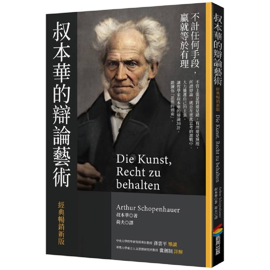 叔本華以先哲的辯證與邏輯為出發點,自創38種辯論招式,涵蓋哲學、心理學基本概念、邏輯、修辭、倫理、操縱技巧、命題、反命題、綜合命題等,以絕妙的方式引領讀者理解辯論的藝術。全書妙語如珠,讀來饒富興味。