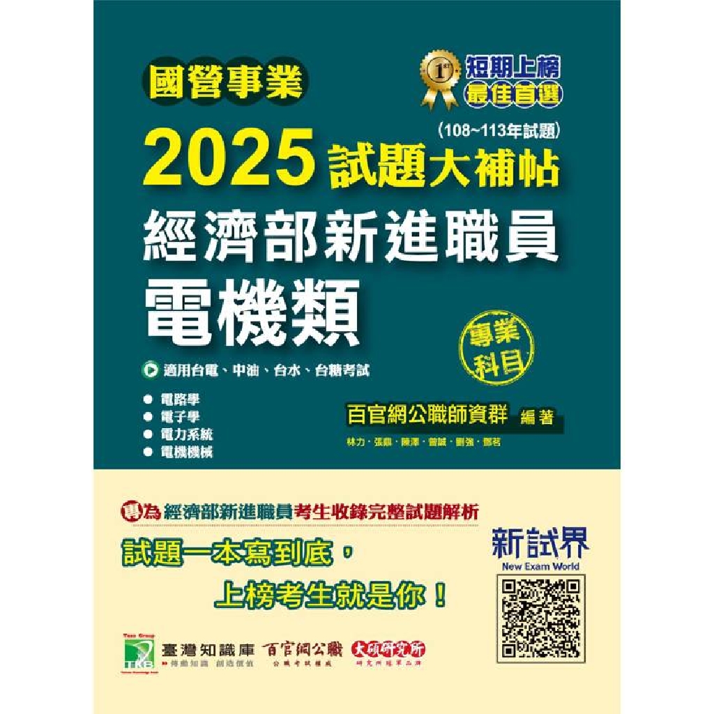 國營事業2025試題大補帖經濟部新進職員【電機類】專業科目(108~113年試題)[適用台電、中油、台水、台糖考試](CR4102)