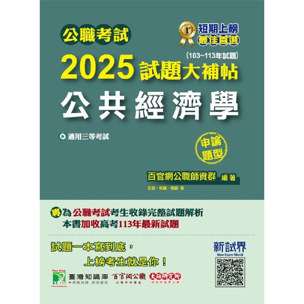 公職考試2025試題大補帖【公共經濟學】(103~113年試題)(申論題型)[適用三等/高考、地方特考](CK4131)
