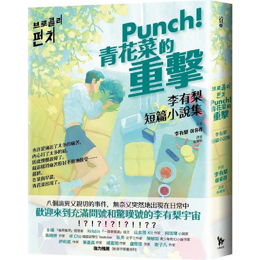 想必不只有我在細細品嘗這個世界後,依然無法離開座位,繼續流下口水。在充滿黏稠苦澀滋味的現實上,包裹了一層夢幻的糖霜,那滋味太過香甜,即使已經知道那裡面是什麼樣的味道,卻還是連裡面的苦味都一起咀嚼嚥下。甜到刺痛,苦到發麻——品嘗這樣的滋味亦是閱讀小說的樂趣。另外,我對《Punch!青花菜的重擊》還有一點小小的期待,那就是希望這本書能夠化作香甜的興奮劑,讓對於赤裸裸地將「現在這裡」重現出來的韓國文學有沉痛感悟而略顯疲態的讀者,能重新愛上小說。如果有人需要一些樸實的安慰,希望《Punch!青花菜的重擊》能如同糖果般被遞到那個人的面前。或許那個人閱讀李有梨的小說後,會因為高糖效應(Sugar High)獲得閃耀發光的力量,而能往前邁開步伐。