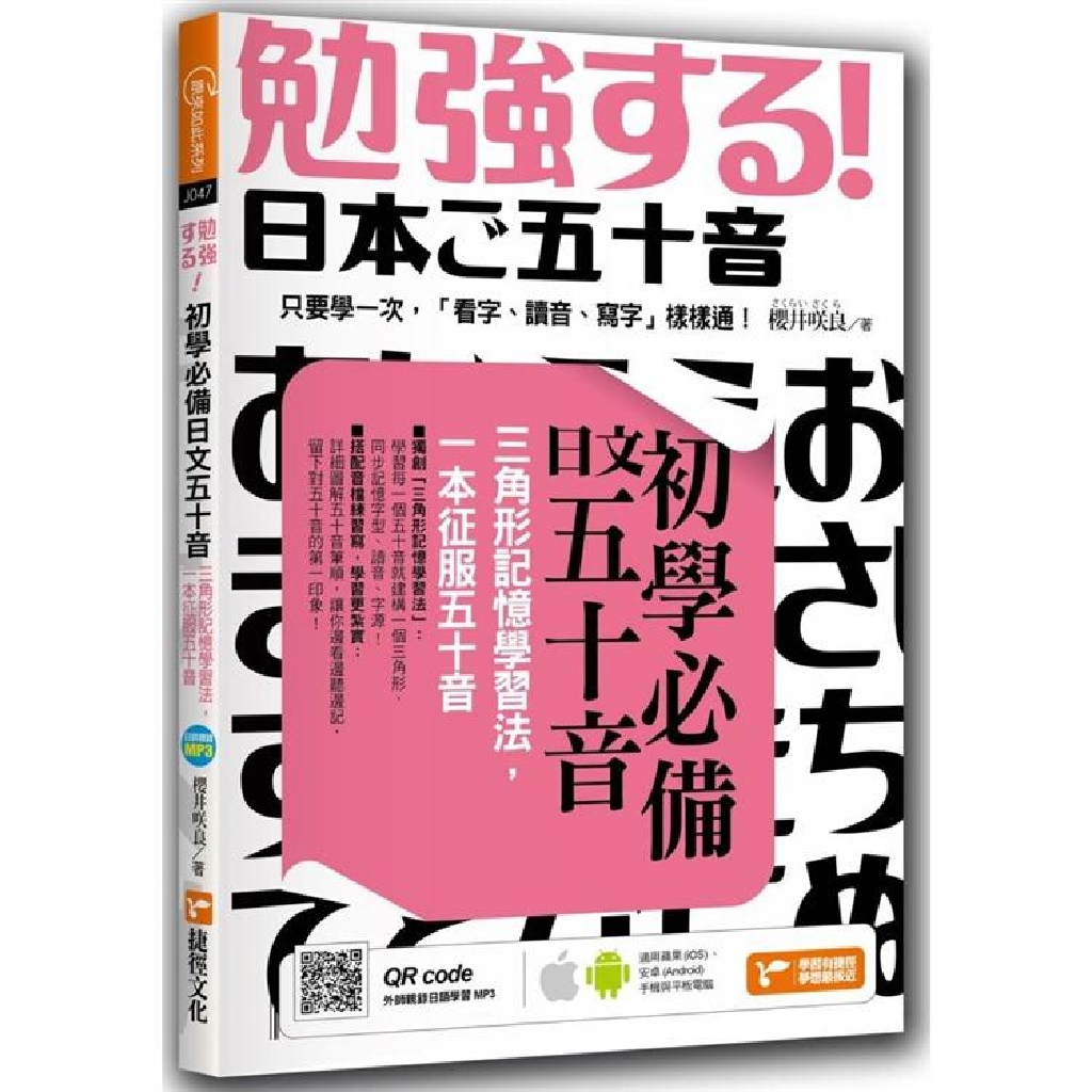 研究發現,學習一個字母,就像在大腦建一座塔、蓋一座山,除了會看,還要同步會讀、會寫。在書中,我們把每一個假名的字型、讀音、字源通通收在一個三角形裡,詳細圖解五十音筆順,讓你邊看邊聽邊記,留下對五十音的第一印象!