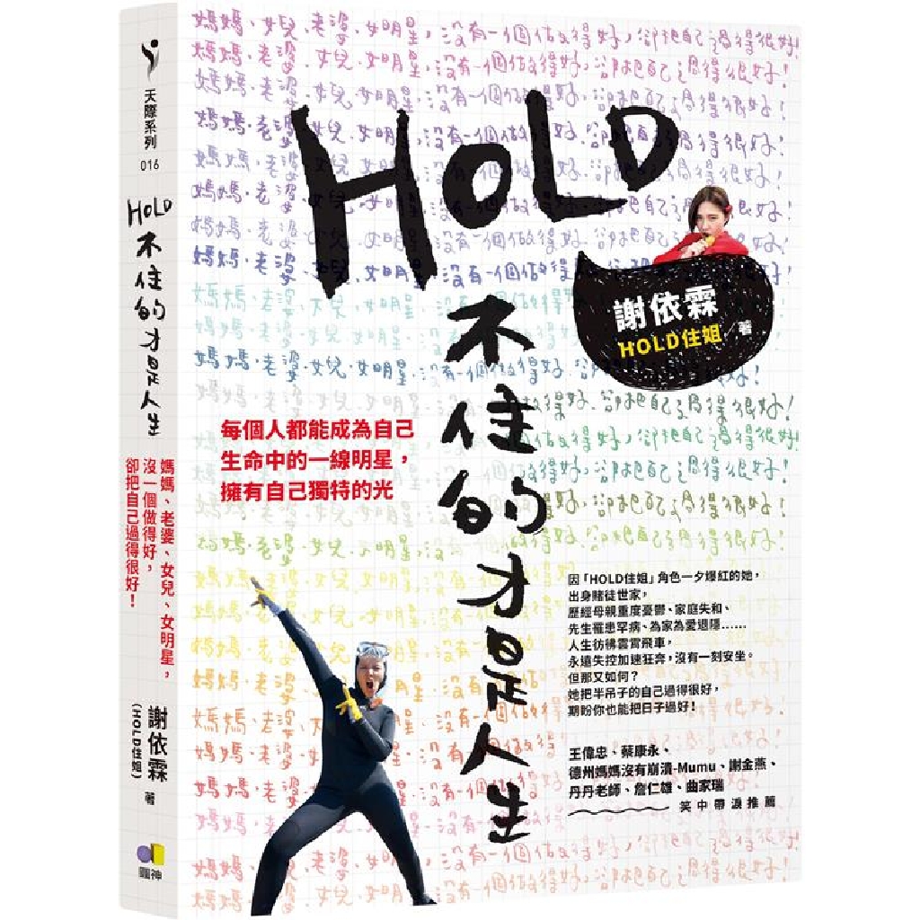 鮮為人知的是,她活潑亮麗的背後卻有著千瘡百孔的童年:出身賭徒世家,家庭失和,媽媽是從未走出泥淖的憂鬱症患者,目睹過無數次媽媽自殘的畫面,她只能用樂觀傻氣的人設包裝心中的痛苦無助。然而一個機運讓她戲劇般大變身,從一個蹲在樓梯角偷吃餐廳剩菜,被抓到還要扣薪水的打工仔,到所有幕前幕後的人都叫她姐的大明星,享受燦爛奪目的鎂光燈與掌聲。但快速成名之後伴隨而來的,便是過去陰暗面的反噬。於是她在爆紅之際選擇婚姻,先生卻罹患了罕見疾病,讓她的腦海裡只剩下一個聲音:「我沒有不開心,但我不想活下去。」為了找回自己,找回家人,她移居花蓮。沉寂之後,她終於找回真正發自內心的歡笑,懂得什麼都是半吊子沒關係,HOLD不住也沒關係,或許不夠頂尖,不是完美,但那依舊是你獨一無二的人生。她期許透過文字,分享自己的經歷,祝福每個讀她愛她的人,散發出自己獨特的光,找到HOLD住自己的力量。