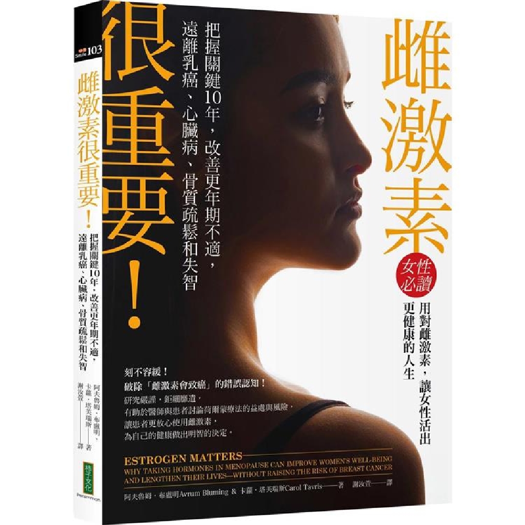 《Estrogen Matters》中文版在眾人殷殷期盼下,終於要出版了!本書作者、腫瘤學家阿夫魯姆及書中提到的許多醫學專家,透過實證的方式逐一揭開雌激素的神祕面紗。女性一輩子都需要雌激素,它就像國家音樂廳的樂團所譜成的「音樂交響曲」,動聽悅耳、節奏律動恰到好處,但過往我們總把雌激素與乳癌畫上等號,實為對雌激素之誤解,這也導致許多婦女錯過使用雌激素的好時機,而忍受更年期、停經後接踵而來的困境(心血管疾病、情緒障礙、骨質疏鬆、新陳代謝症候群、更年期生殖泌尿症候群)。根據我在臨床上運用雌激素的經驗,以及定期婦科檢查三點不漏,適當的雌激素的確可以協助熟齡婦女以優雅健康的方式面對停經後的生活,在此誠心推薦此書給所有女性!──張宇琪 醫師,台灣生物等同性荷爾蒙學會理事、中華亞太婦科美容學會監事、台灣更年期醫學會副祕書長、國際更年期醫學會會員、台北市立萬芳醫院婦產科主治醫師