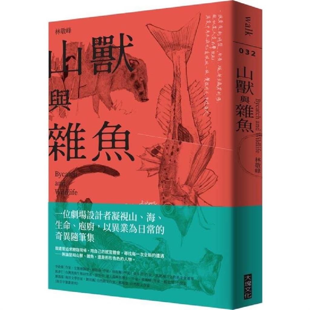 《山獸與雜魚》分成「啟.山.海.刀」四輯,收錄其中的三十餘篇文字,在與山海萬物邂逅間,在各式圖鑑之外,林敬峰親身觀察蟲虫蟻獸、海物魚蝦蟹,「再往前走,頭頂處傳來一陣喧嘩,用手電筒的餘光一照,上頭的岩壁吊掛著密密麻麻上百隻的蝙蝠,與前者不同,這群大傢伙不斷扭著脖子、開闔翅膀、抖動泛著微微金色光澤的毛皮,如一團開得茂盛的龍眼花。牠們用我們無法聽懂甚至無法聽見的語言議論紛紛,在一片滋滋滋中,忽然有那麼幾隻張開碩大的弧翼無聲的飛翔,把尿撒在我們頭上。」