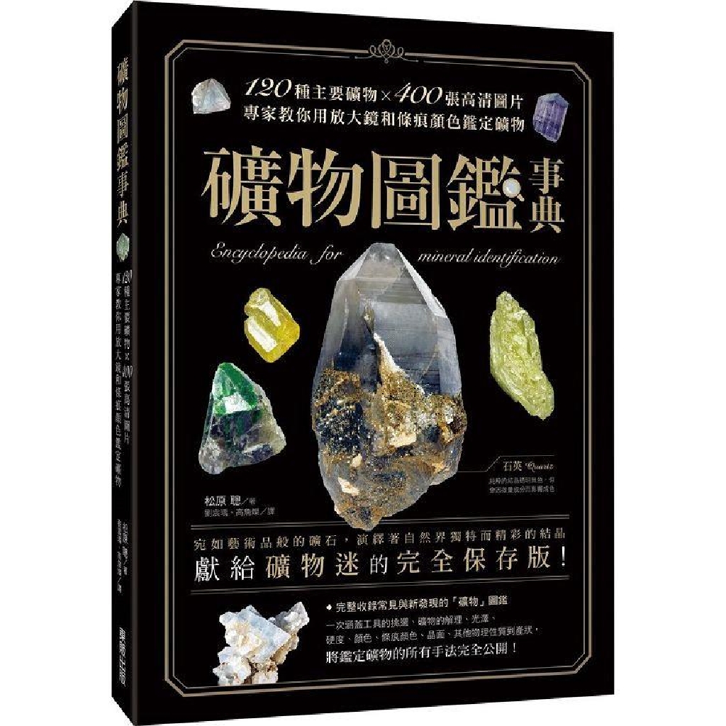 並且一次涵蓋工具的挑選、礦物的解理、光澤、硬度、顏色、條痕顏色、晶面、其他物理性質到產狀,利用放大鏡和條痕顏色鑑別礦物的關鍵,將肉眼鑑定礦物的所有手法一舉公之於眾!