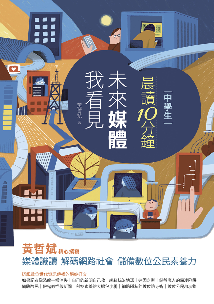 本書作者擁有二十幾年媒體資歷,一路走來從傳統主流紙媒到新時代的網路平臺,見證媒體生態的改變,也看見資訊傳播的轉變、社群媒體的美麗與哀愁。他以二十一篇文章,帶領讀者從媒體識讀開啟對話,進而帶入數位轉型、新聞自由的價值、現代公民的媒體行動,並一路直搗至破解假新聞、理解大數據、對抗網路酸民、遠離網路霸凌、避免手機成癮、透視社群媒體的潛能與威脅。這是身處數位世界和網路叢林你我必讀、必備的大補帖與自救手冊。