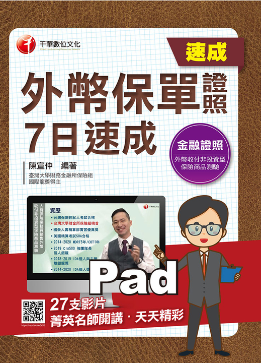 除了拼命死背題庫外,你有更好的選擇!千華數位文化所出版的《財產保險業務員資格測驗 重點整理+試題演練》全書系統化的區分課文重點,並將所有考試題目循序漸進的分作牛刀小試和章後精選試題以及全範圍仿真模擬試題,不僅讓你有階段性(由小到大)的目標複習,更有實務經驗的名師為你精心編錄大範圍仿真模擬試題,並針對較易混淆的難題加以解析,相信不僅能幫助你順利獲取證照,更能幫助未來踏入保險業的你理解更多的實務操作,比別人提早做好準備!