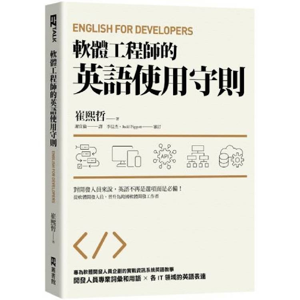 本書作者為韓國軟體開發人員,靠自身努力成為在美國活動的全球軟體開發工作者。現在他不藏私教導開發人員必備的英語,把軟體開發過程中會用到的所有英語用法和須知內容,做有系統的整理歸納,方便學習者直接套用。