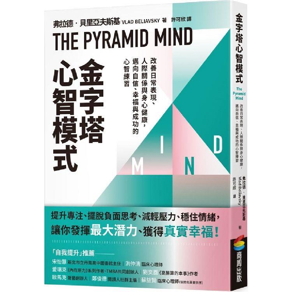 在《金字塔心智模式》中,奠基於英國知名華威大學(Warwick University)領先全球的研究成果為基礎,弗拉德‧貝里亞夫斯基(Vlad Beliavsky)博士揭示了一套嶄新的方法來組織我們的心智。他將我們的心理功能分為六個相互連結的部分:理性、信念、記憶、情緒、言語和行為,每個區域都有助於我們成為什麼樣的人,並影響我們的身心健康、人際關係和日常表現。
