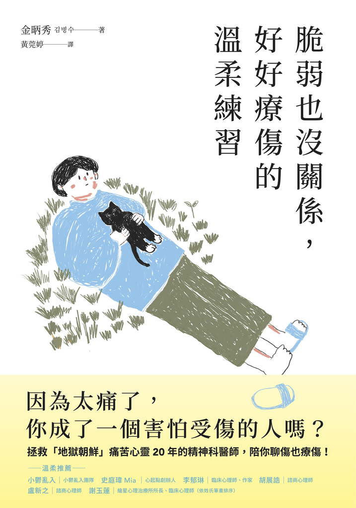 這些糾結與徬徨,執業二十多年的精神科醫師金昞秀都懂!他在診間遇過無數個恨自己、被自責淹沒、害怕跨出下一步、人類過敏症、覺得人生就像一艘沉船的人們;他自己更經歷艱辛的軍醫訓練與派駐伊拉克戰場的日子,像所有人一樣感受過脆弱受傷的時刻。所以他知道,這都是受過傷的痕跡,是害怕再受傷的吶喊!