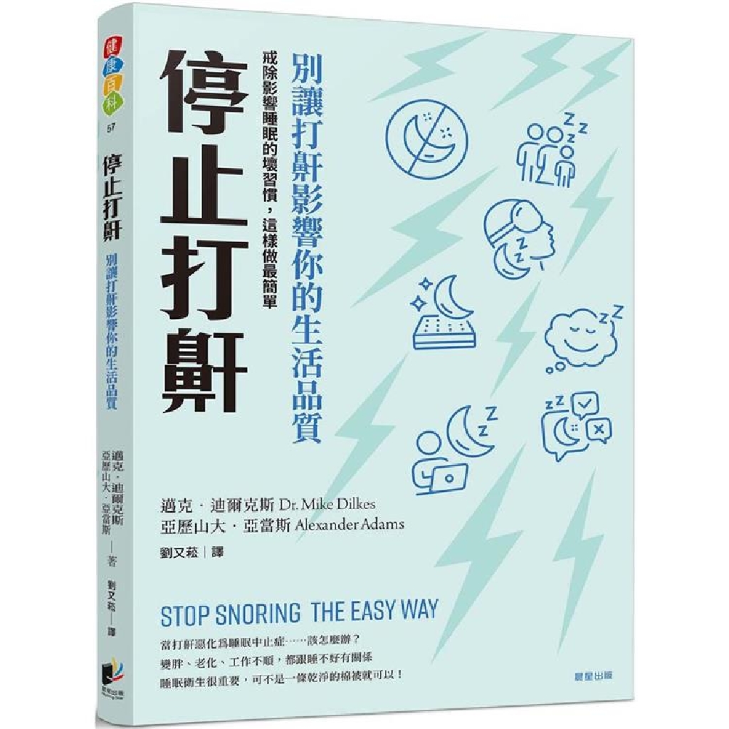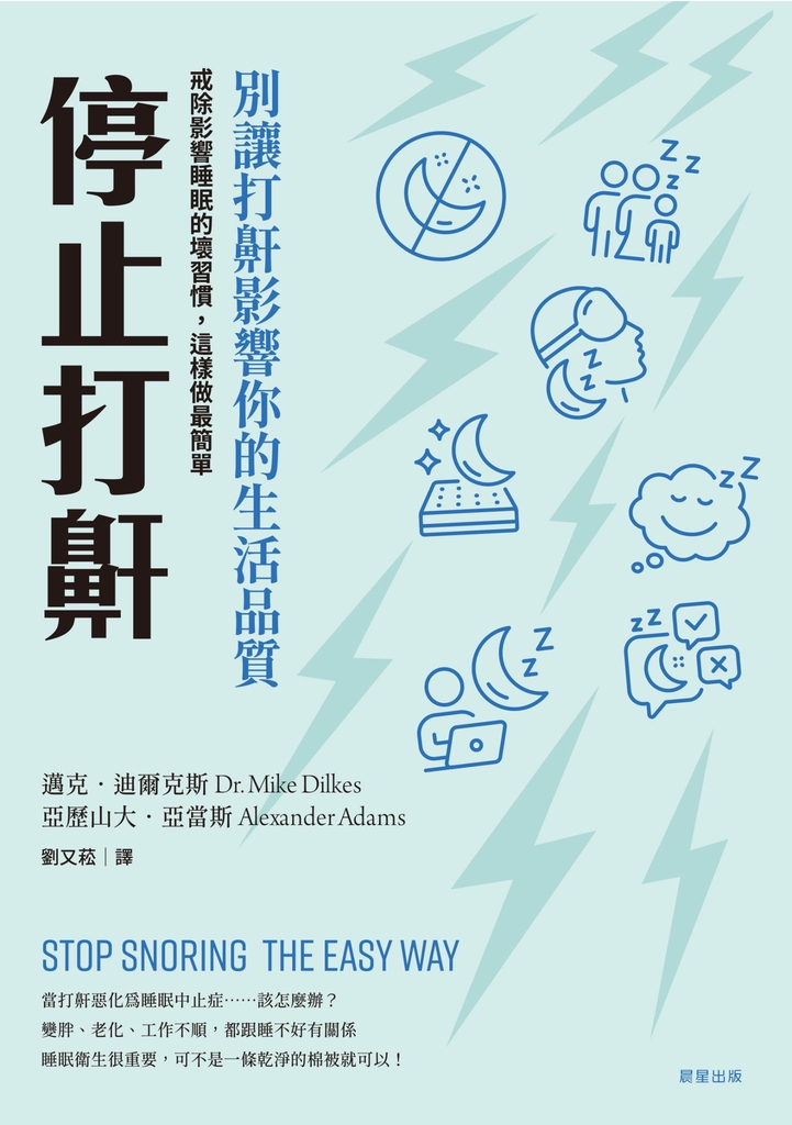 打鼾對生活的影響絕對超乎你的想像,不僅因自己無法有足夠的恢復性睡眠時間、危害健康,更將你與伴侶的距離愈拉愈遠!擁有三十多年臨床經驗的耳鼻喉科顧問醫師,邁克.迪爾克斯醫師設計的「五分鐘運動」,幫助打鼾者消除影響深層睡眠的壞習慣,隨之而來的各種正向效益,將令你驚喜不已。