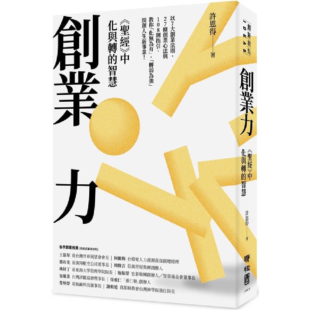 本書結構性地拆解《聖經》故事對世人的深刻啟發,輔以36位臺灣本地創業家的真實經歷與成功特質相互印證,夾敘夾議、擲地有聲地直指創業成功所需的智慧和行動。