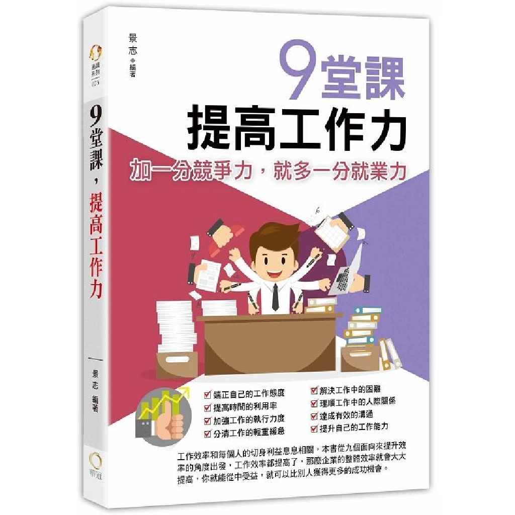 要想提高工作效率,就要提升自己的工作能力,因為能力提高了,效率自然就提高了。掌握扎實的理論基礎,可以說是工作能力中的最基本的一項能力,然後就是良好的專業技能了,也就是理論與實踐的結合,所以要提高動手能力。同時還要具備一定的學習能力、思考能力、應變能力、心理承受力、團隊合作能力,提升一下自己的綜合素質。