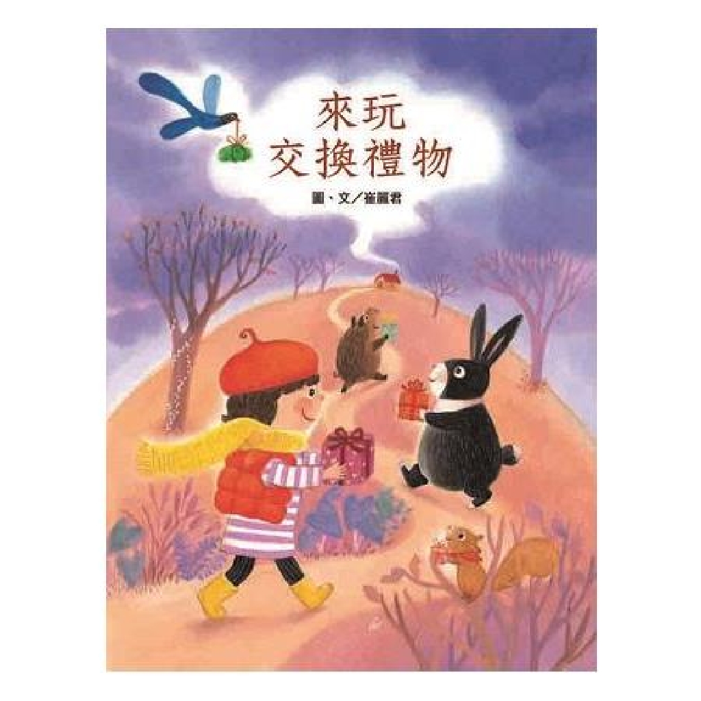 冬天到了,整個山林變得很不一樣,偶爾有陽光露臉,偶爾灰灰的天空讓人更加期待與好朋友相聚。小花圍了一條很漂亮的圍巾,史普力也很想要有一條,於是他們貼出了海報,邀請山林裡的朋友一起到老奶奶家玩交換禮物。