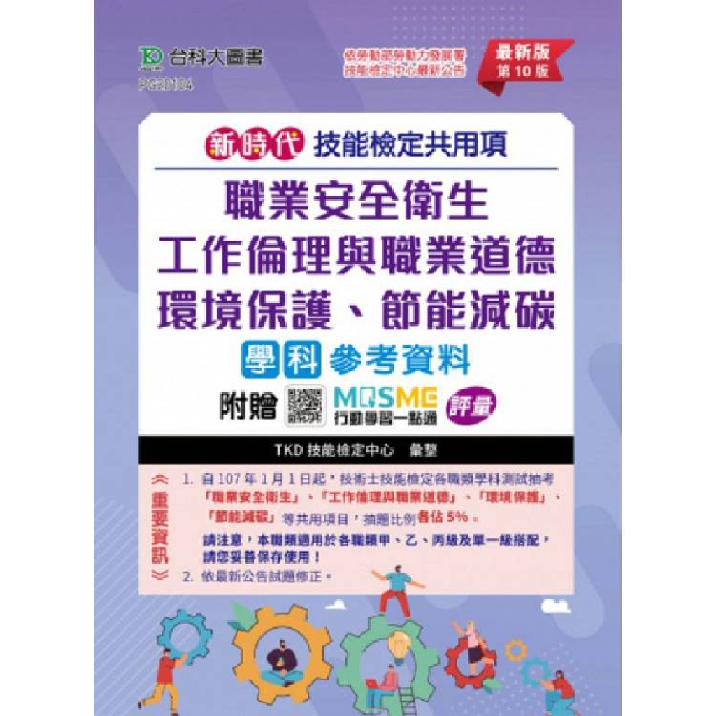 本書係依據勞動部公告之技術士技能檢定共用項「職業安全衛生」、「工作倫理與職業道德」、「環境保護」、「節能減碳」教材編輯而成,另提供「MOSME 行動學習一點通」(請參考封面裡操作說明)線上測驗,好學習、好準備、好評量的三大功能,可重複測驗練習增強實力,幫助讀者順利通過檢定。