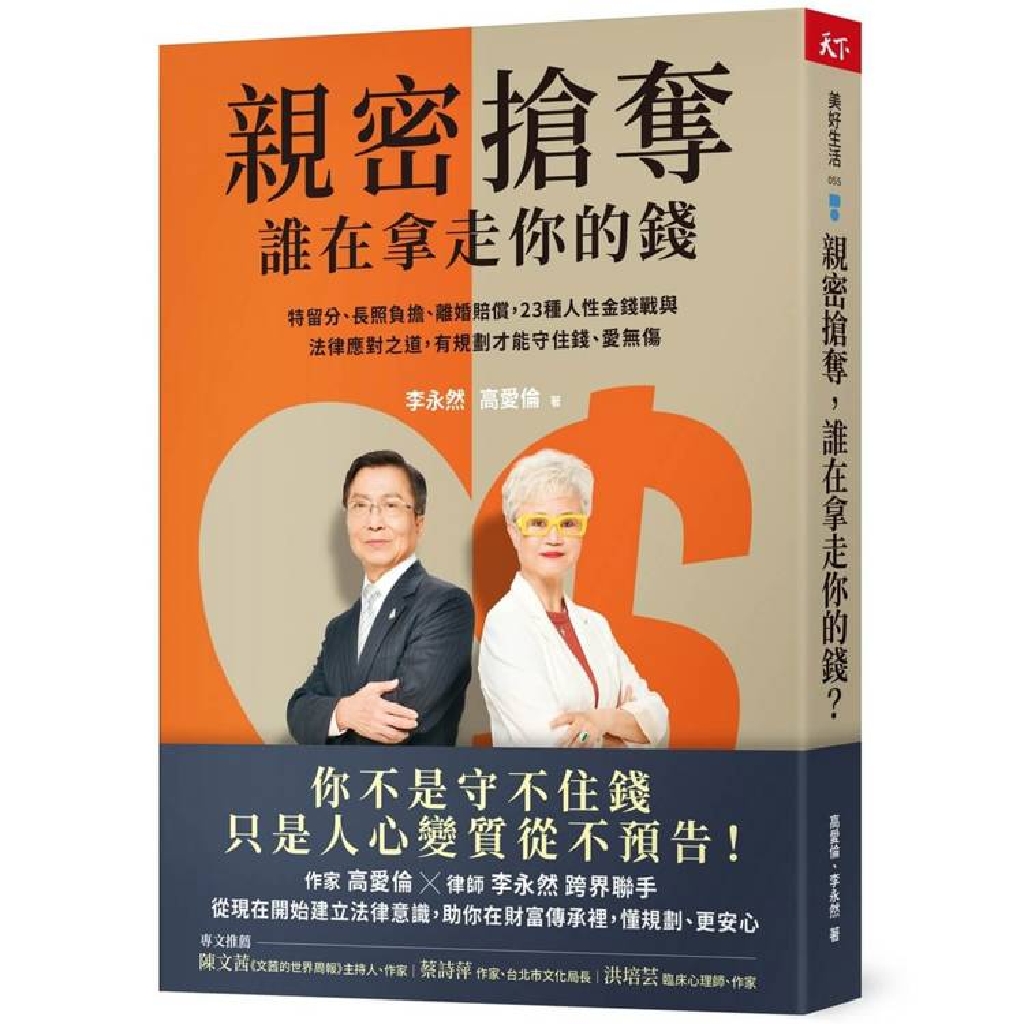 金錢的背後,看清人性的真相。從特留分爭議到長照責任、從財產分配到離婚賠償,走進23個人生現場,高愛倫用溫暖的心、犀利的筆,寫下親密關係間最難堪的財產搶奪。資深律師李永然再以實用的法律觀念,救援手足間、家庭裡最棘手的金錢戰爭,提供法律上的清晰解答。