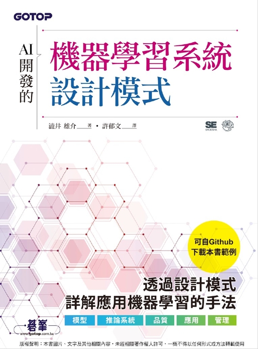 本書內容兼顧理論與實務,用大量示意圖與範例,幫助讀者建立機器學習的基本概念。第一章介紹機器學習的基本概念與類型,幫助讀者快速入門。第二章深入探討監督式學習,涵蓋多種經典演算法,如線性回歸、決策樹與神經網路等。第三章則介紹非監督式學習,重點講解資料探索與聚類方法。第四章專注於模型評估與優化,幫助讀者提升模型性能。最後,第五章通過台股數據分析與YOLO物件辨識兩個實戰專案,讓讀者實際應用所學知識,開啟機器學習與深度學習的探索之旅。