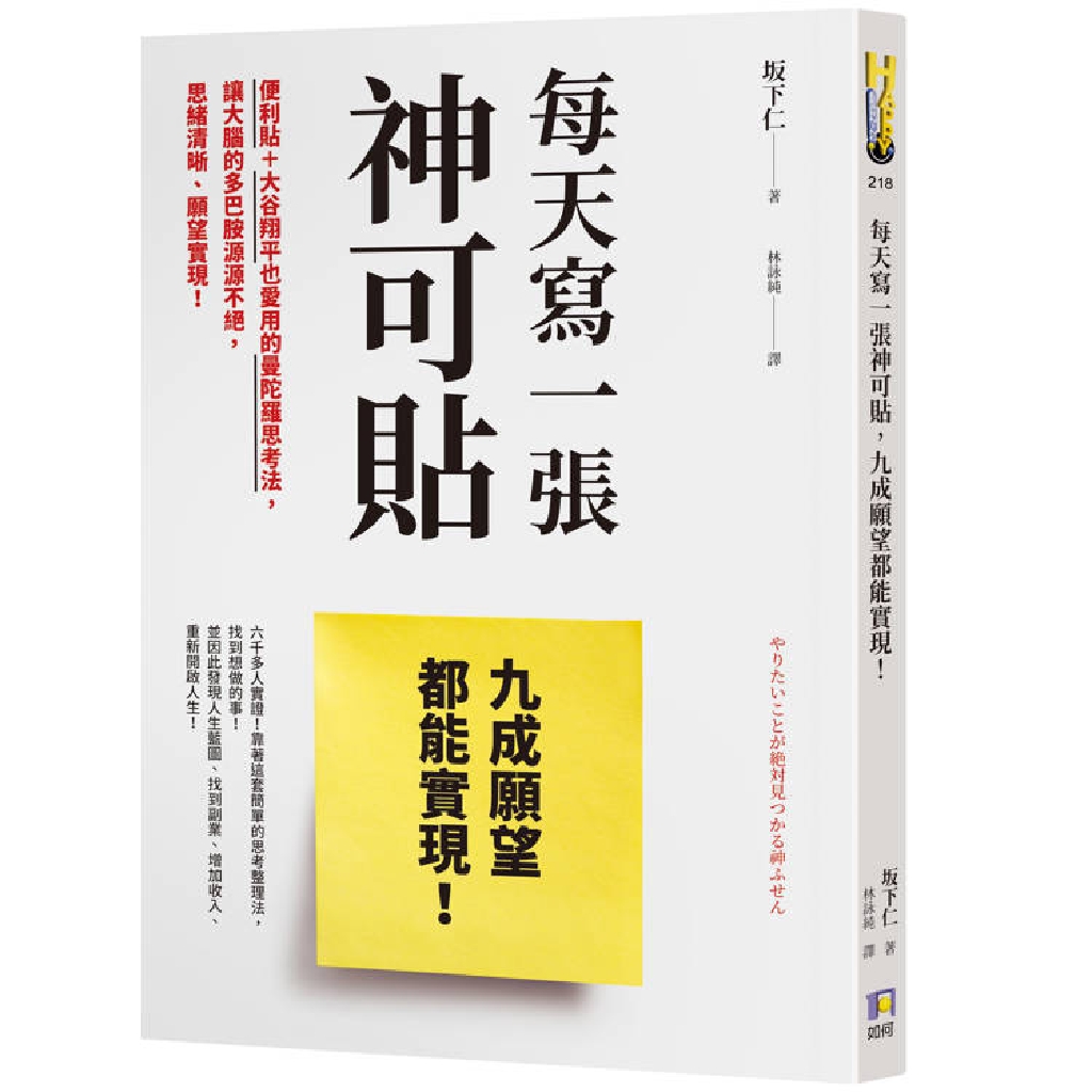 他為了方便操作繪製人生設計圖的「夢想實踐法」而研發出專用便利貼,至今使用的便利貼超過10萬張,而櫃子裡也隨時備有10萬張。目前已經有許多人靠著這套方法「找到想做的事」、「找到人生目標」、「找到副業」、「增加收入」、「重新開始人生」,而本書就是將這套「夢想實踐法」編纂成書。