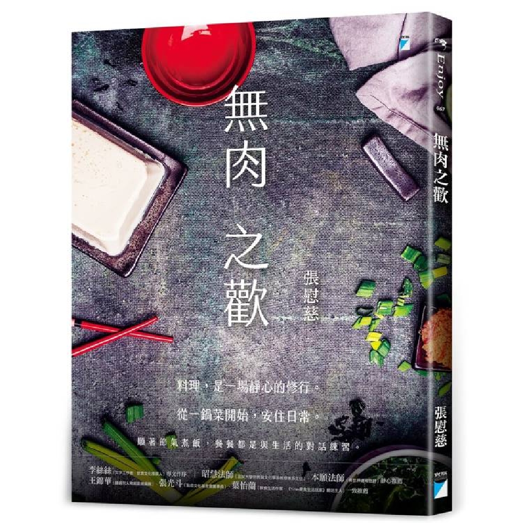 繼二〇一七年出版《食禪──一只碗裡的四季風景》後,張慰慈再次以廚房為筆,推出全新作品《無肉之歡》。多年推廣「食禪」的經驗,讓她堅定地相信:料理不必追求華麗,應該貼近生活,用當季、當地食材,煮出讓身心安頓的一餐。