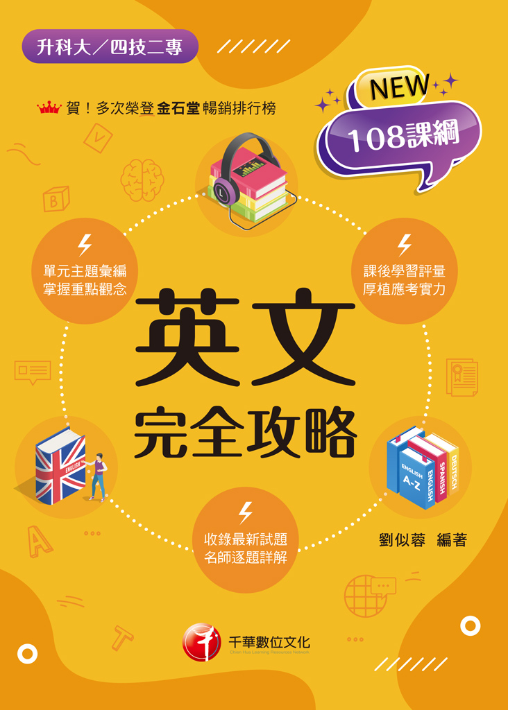 108課綱上路後,測驗都以強調「素養導向」為宗,考題將十分廣泛且生活化。所以本書以課綱方向為主軸來做主題式的單元彙編,彙整各年度相關英文考古試題,並補充常考單字片語、設計精美表格以強化重點記憶,句型文法部分也詳細拆解說明,各種題型都無所缺漏。有充實的內容配合完整的測驗練習,相信定可幫助你奠下良好的英文基礎,而後高分通過各類英文測驗。