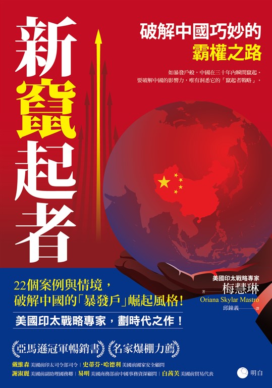 美國政治學家、印太司令部的戰略規劃官梅慧琳(Oriana Skylar Mastro),綜合專家訪談、精密數據,以及權威性中文資料,提出嶄新思路,終於破解中國絕無僅有的強權竄起模式──利用其他大國忽略的地緣政治機會,造就新興強權地位。