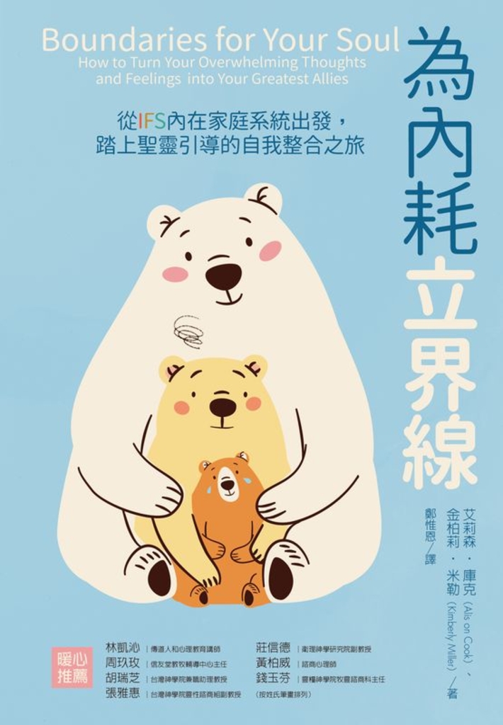 本書結合IFS理論與靈性實踐,邀請你展開一段與自己和解的旅程。你將學會設立健康的內在界線,邀請聖靈引導自己的內心,在聖靈的光中,找回那個充滿好奇心、信心、憐憫與勇氣的自我。