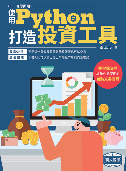 有鑑於此,本書使用Python作為程式開發的語言,其本身語法友善、操作簡單,是切入程式交易的方便工具。本書內容均可實作,不論多好的交易策略,都要自己動手分析才能實際上場,並且範例程式碼非常彈性,讀者可以自行修改成自己的版本,讓我們一起打造超級績效吧!