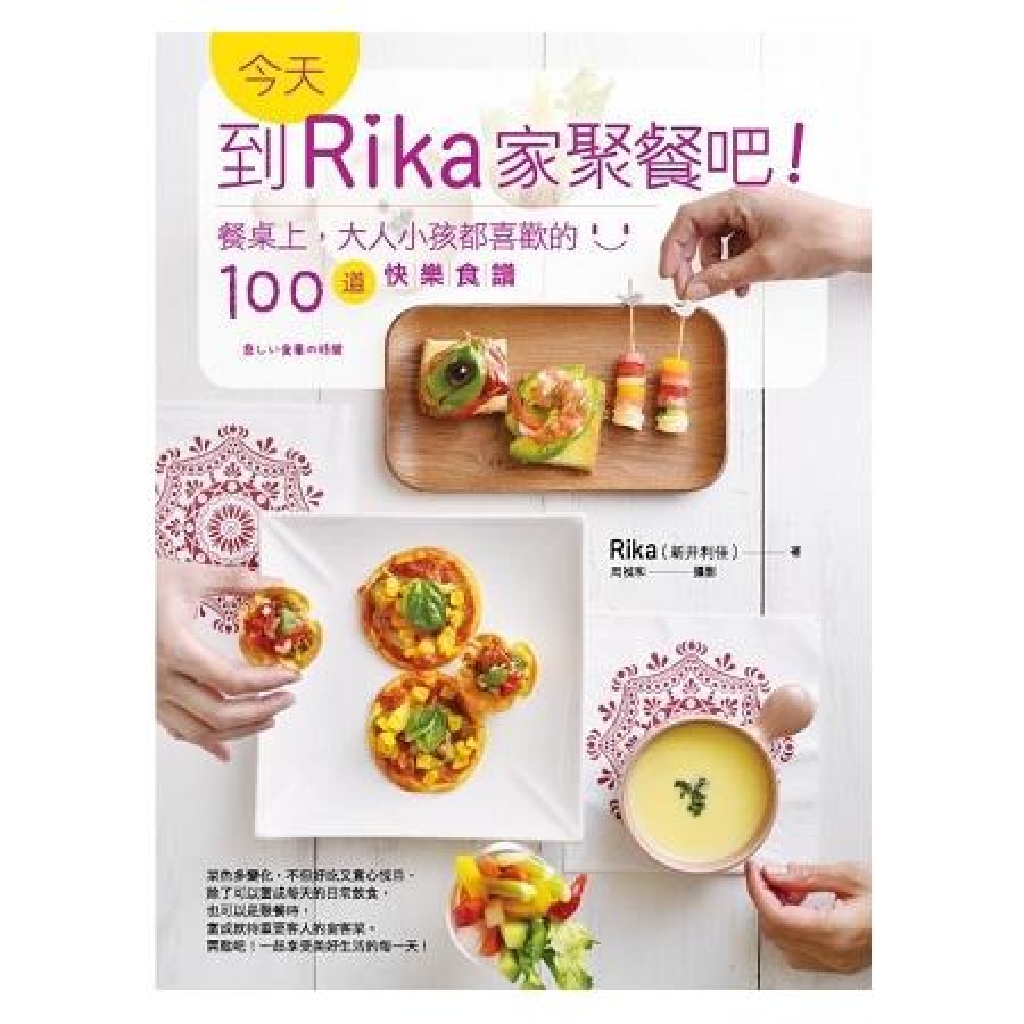 每一道菜都是作者Rika都是精心設計的美味。對於以「傳統台式料理」來宴請親朋好友男女朋友同事&大小朋友來家中聚會的料理已經膩的朋友們,這裡提供另一種聚餐的新選擇!台灣和日本的文化和飲食等是最相近的,對於台灣人接受日本的料理的接受度是最高的,以日本人的角度來製作日本料理和台、日親朋好友男女朋友同事&大小朋友一起享受快樂的聚會,並以「おもてなし」(真心誠意招待)方式來製作出一道一道美味的料理,本書將以輕鬆快速的方式,教讀者做出變化多端,省時美味又好吃的日式聚餐料理,有100道主菜、副菜、湯品、甜品與飲品等等。即使客人中小小朋友也不用煩惱,這裡也提供許多大人可以和小朋友一起動手做的歡樂料理喔!