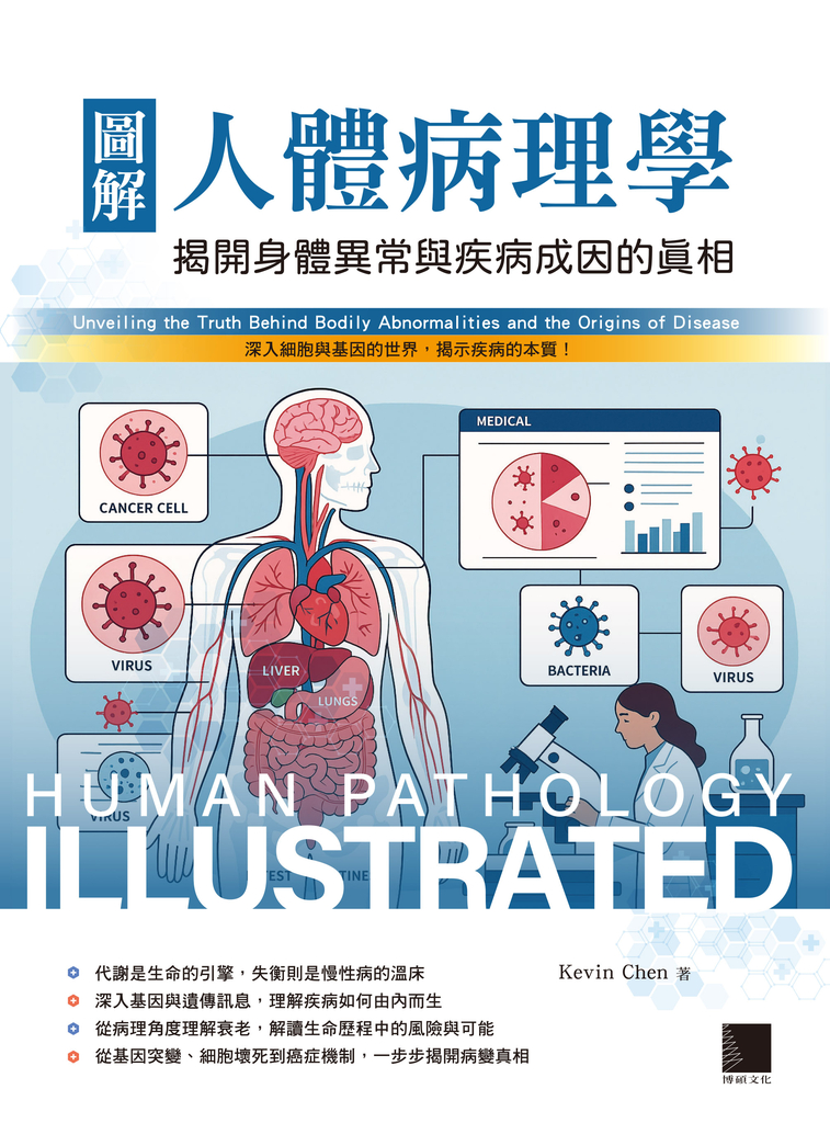 從細胞如何受損、基因怎樣出錯,到疾病如何一步步發展,乃至現代病理診斷技術(如細胞學、組織學、免疫化學、分子病理)及AI與數位病理的應用,本書完整建構起一條通往疾病真相的學習脈絡。