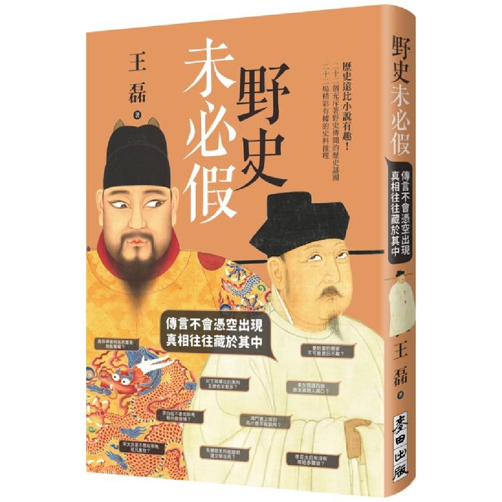 本書作者王磊,精選了中國歷史上討論度最高、最具戲劇性的二十二個歷史謎團,兼採正史與野史的多項記載,抱持批判與辯證的態度相互印證、並對照真實的人性,推斷出更接近歷史真實面貌的可能事實。搭配作者說故事的技巧與恰如其分的幽默文筆,讓本書讀來更加酣暢有趣。