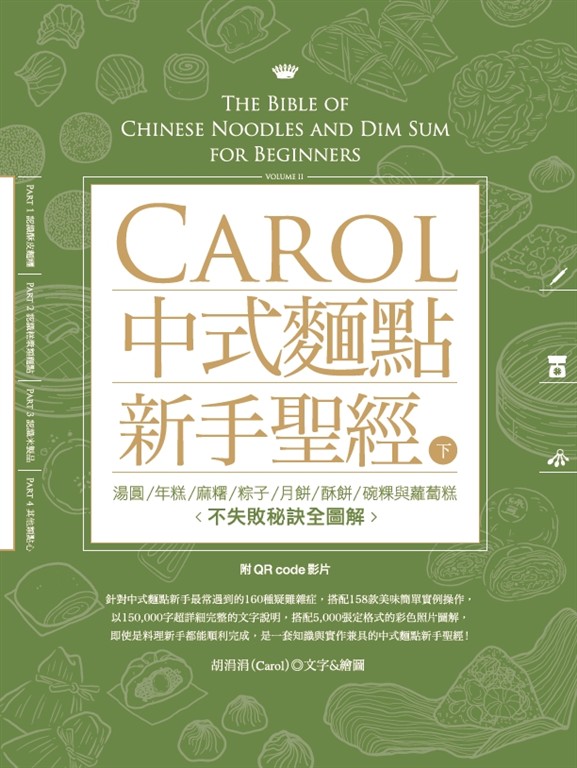 由作者Carol本人親身的經驗,讀者來信提問,加上部落格留言,歸納整理中式麵點新手最常遇到的各式疑難雜症,透過詳細的實際步驟說明及問題解答,將20年來日積月累的經驗,絕不藏私、毫不保留完整地分享給所有讀者!讓更多人可以走入傳統食物的製作,並親自體驗中式麵食與點心迷人的風采。全書只利用適合家庭簡單操作的器具及材料,讓你節省時間及體力,就能做出道地美味的傳統米食與麵點,即使是料理新手都可順利完成。這是一套知識與實作兼具的中式麵點新手聖經,全書數千張定格式的彩色照片圖解加上超翔實的文字說明,是出版史上難以超越的驚人紀錄!