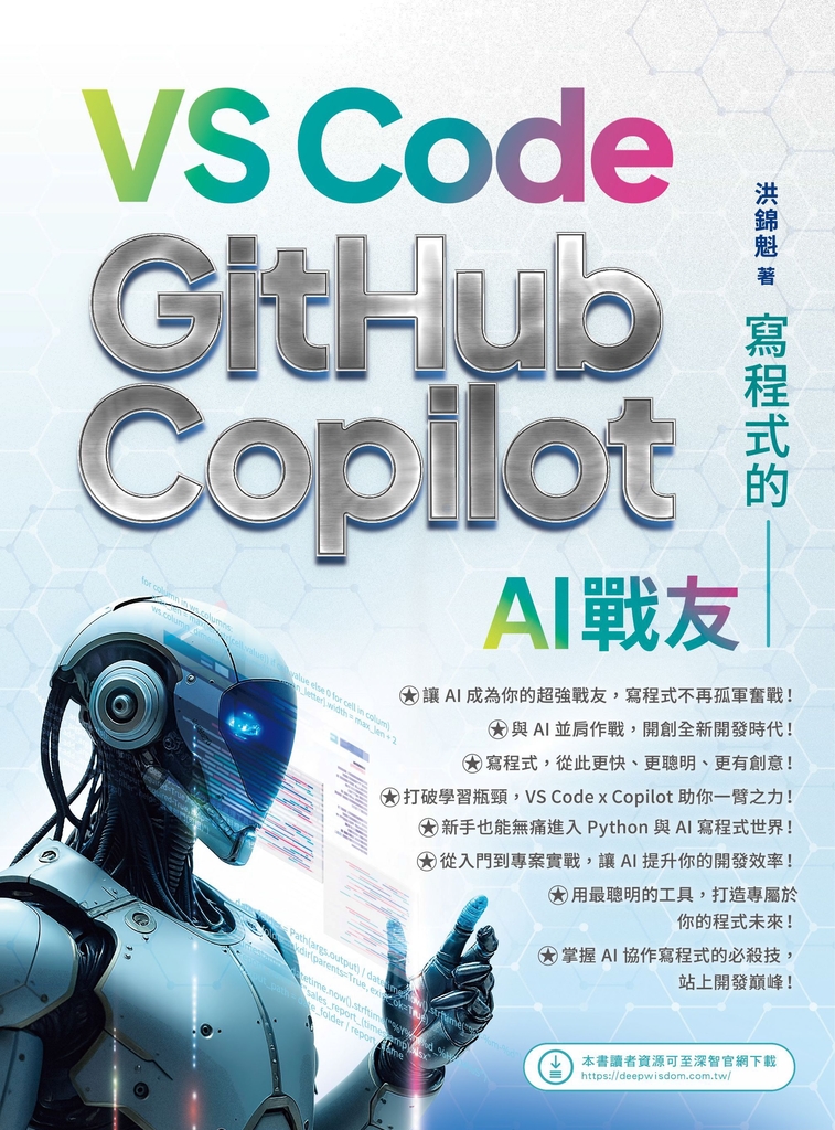 GitHub Copilot 能幫你寫程式,但本書更強調「思維升級」——如何正確下指令、判斷 AI 建議的正確性,培養「指揮 AI」的能力,避免淪為被動依賴。