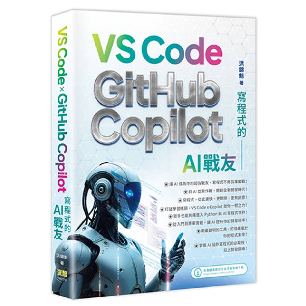 《寫程式的AI戰友 - VS Code x GitHub Copilot》帶你進入 AI 輔助程式設計的新世代。本書不僅教你如何用 VS Code 打造專屬開發環境,更完整揭示 GitHub Copilot 的秘密武器:自動補全、錯誤修正、重構優化、AI 對話寫程式,讓你像專業工程師一樣高效開發。
