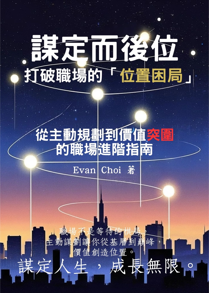 Evan 的作品以實用性與啟發性著稱,常常立足於職場的真實困境,結合歷史智慧與現代案例,提煉出一套系統性的「謀位」方法論,強調主動規劃、價值創造與長期主義,幫助讀者從迷茫中找到方向,從危機中實現逆襲。他的目標不僅在於提供方法,還希望點燃讀者內心的行動力,讓每一個人都能成為自己人生的主導者。