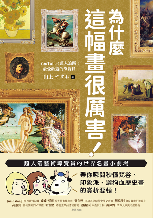 「西洋繪畫的魅力,總算能一目了然!我以前曾試著讀幾本介紹西洋畫的書,卻常常半途而廢……但這本書用山田五郎獨有的語氣,深入淺出地講解畫作歷史與特色,還帶點幽默感,讓我這個原本有點興趣卻不太懂的人也能輕鬆理解、重新愛上這些畫!」