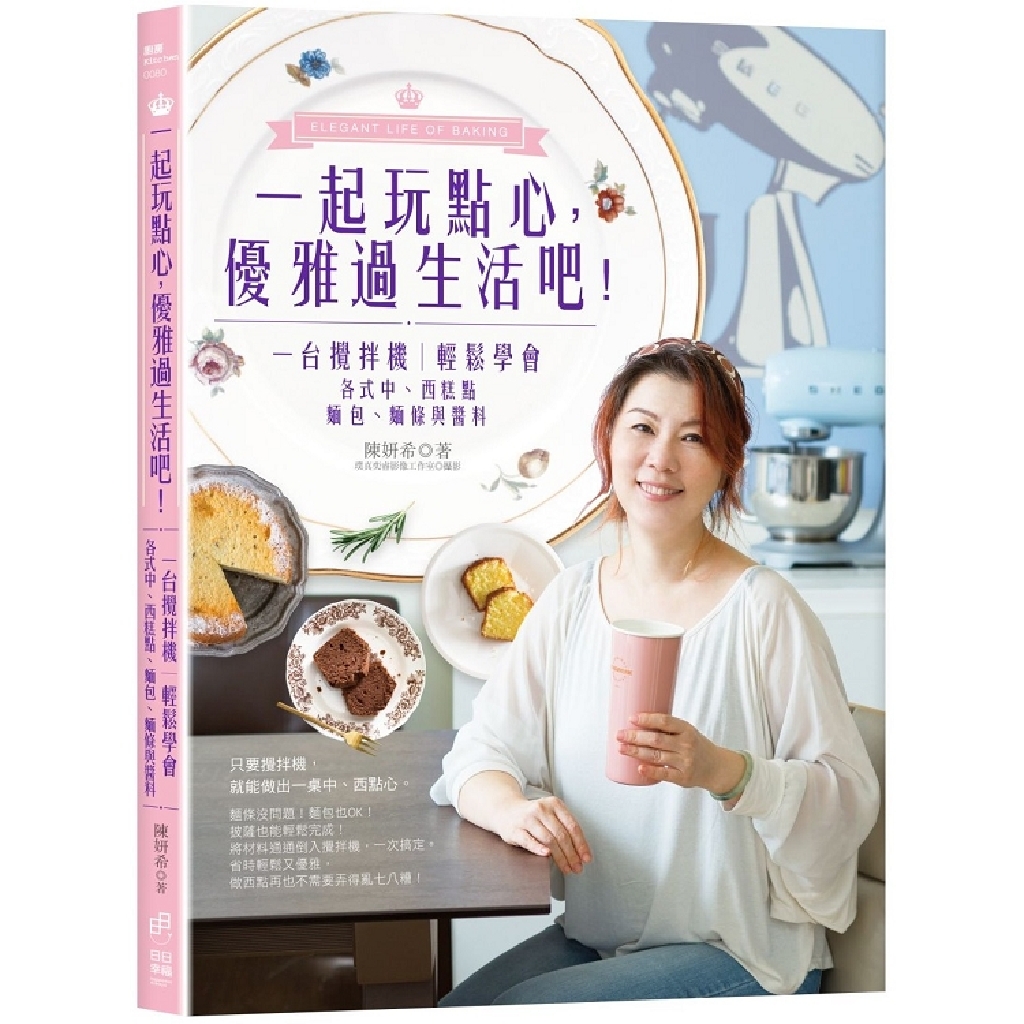本書特地請知名點心老師陳妍希,使用許多人居家都有的桌上型攪拌機,為大家設計出一系列各種精巧的點心、蛋糕。甚至是主食的麵條、麵包也囊括其中。同時,也同場加映各種好吃的西式糕點醬料與中式麵點的配料。