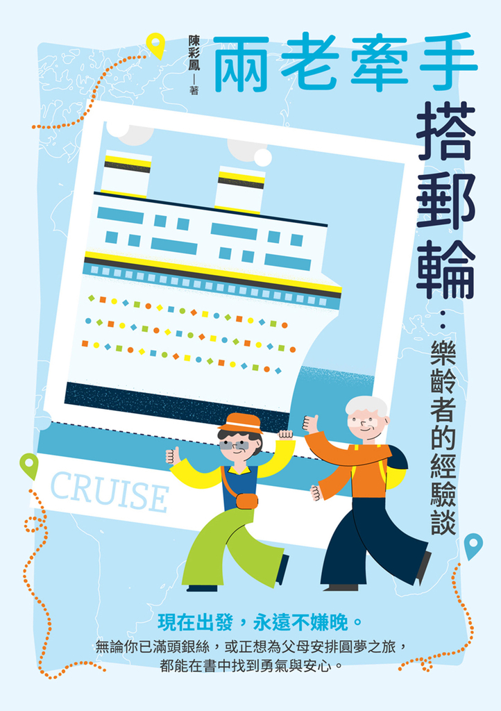 在書中,陳彩鳳以豐富的人生閱歷,細膩描繪郵輪旅途的點滴,分享一場場悠然自在的銀絲行旅。這不僅是一趟趟旅行的經驗談,更是一場場關於歲月、陪伴與探索的生命對話,也是對尚未啟航之樂齡長者的鼓舞勉勵。