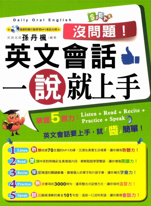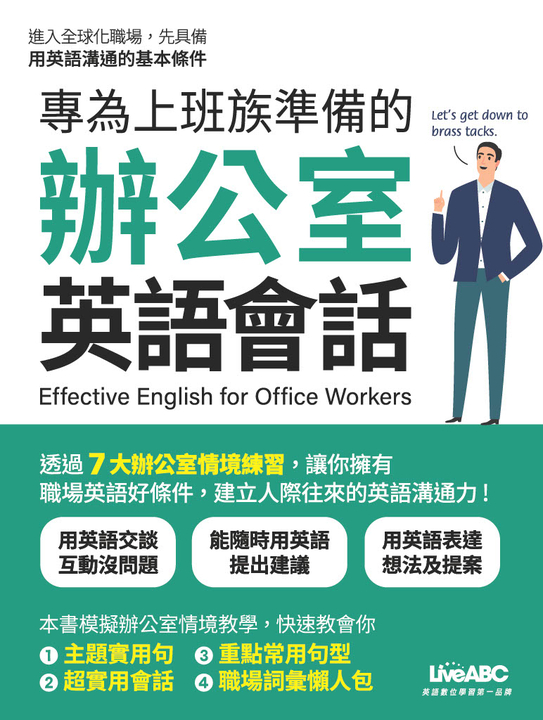 全書分為「生活大小事、職場萬事通、外出旅遊趣」三大面向,包含日常閒聊、人際應對、職場協商與旅遊交通等主題,針對不同情境中可能面對的狀況設計對白,共有115篇豐富會話,讓你面對各種情境都能應答如流。