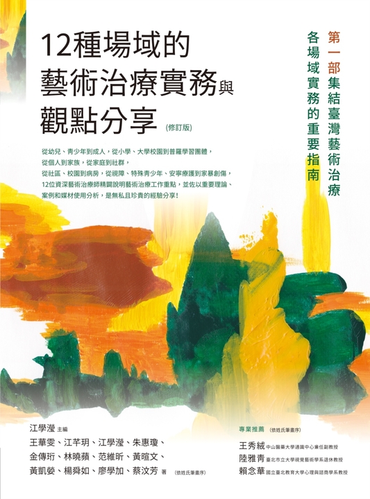 這本書集結了多位資深藝術治療師書寫在不同族群及領域運用的理論及實務,分別撰寫了兒童發展與藝術治療、兒童生活系統與藝術治療及兒童藝術治療實務三部,相信對於有心了解探索學習藝術治療的大眾及專業人員大有助益。──兒童青少年精神專科醫師、中國醫藥大學新竹附設醫院身心科主任暨台灣兒童青少年精神醫學會理事 王明鈺
