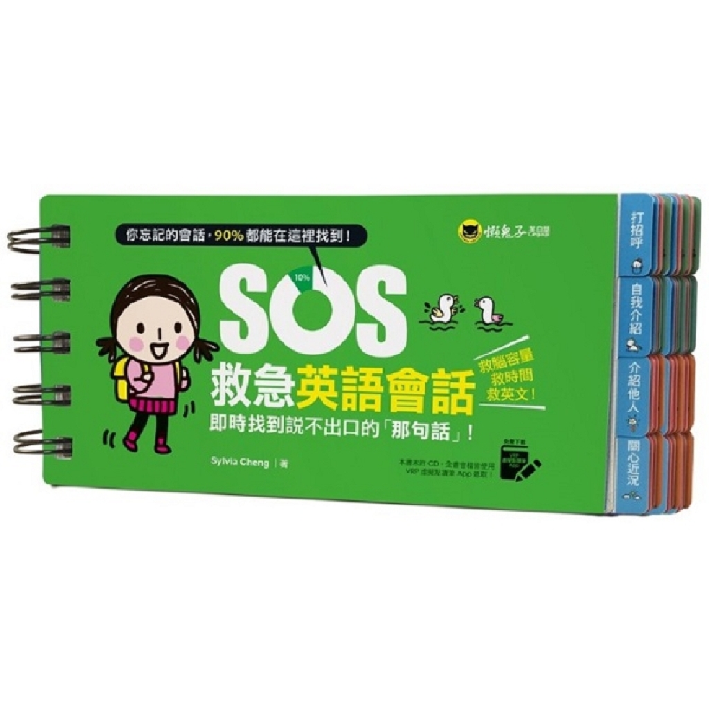 一時忘記的那句話,怎麼翻都翻不到?《SOS救急英語會話》獨家設計,每頁一個索引標籤,正反兩面都能找,讓你在最短的時間內找到忘記的那句話!