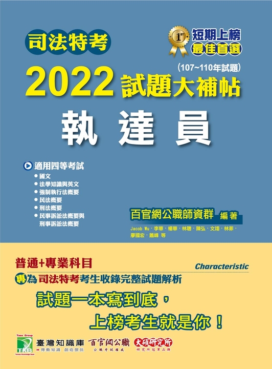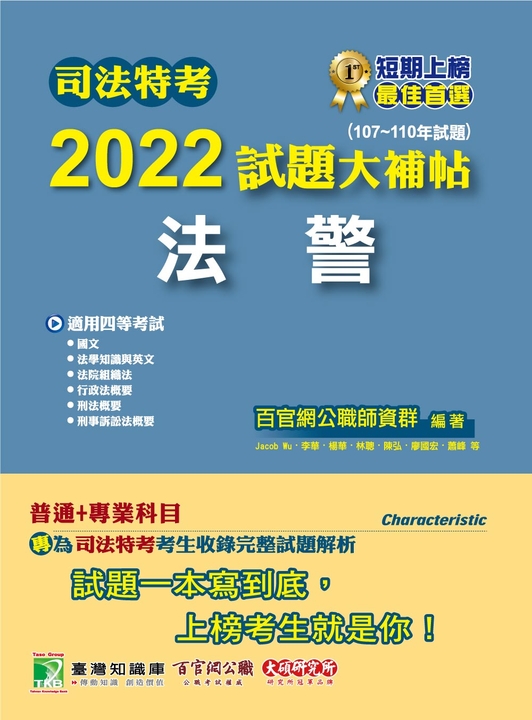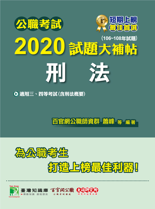 這本《刑法概要》(書號:9786267805121)適用於司法四等考試(法院書記官、法警、執達員、監所管理員)、普通考試法律廉政、地方特考四等法律廉政、身心障礙人員考試四等法院書記官、原住民族四等考試法警。