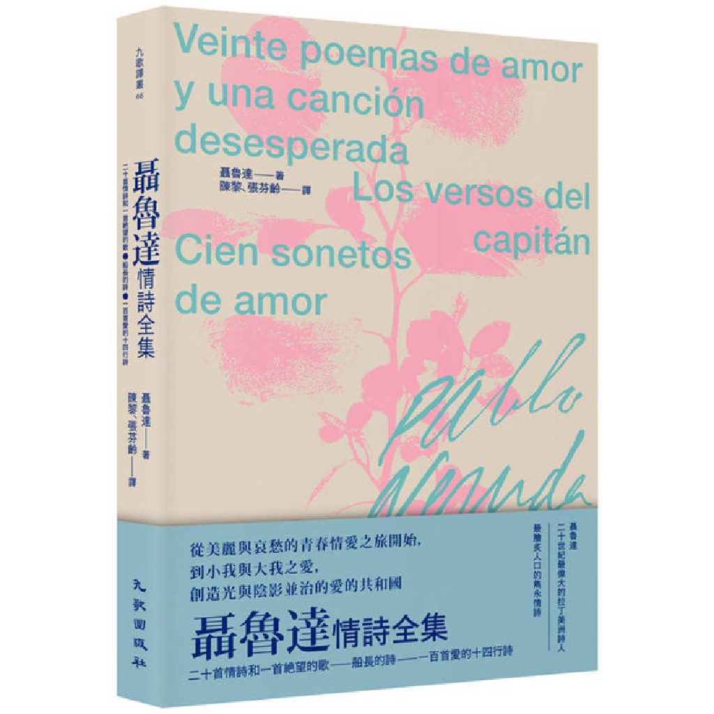 智利詩人聶魯達不只是一九七一年諾貝爾文學獎得主,也是二十世紀最偉大的拉丁美洲詩人。他的情詩享譽全球,從初戀到末戀,從青春到中年,不變的熱情與眷戀,跨越愛與死,永恆與當下。本書完整收錄聶魯達創作的三本情詩集,包含《二十首情詩和一首絕望的歌》、《船長的詩》、《一百首愛的十四行詩》,由詩人陳黎與張芬齡精心譯成,看見聶魯達筆下,愛情並非全然的浪漫甜美,儘管帶有苦澀,卻是唯一可與死亡、挫折、孤寂等人世黑暗相抗衡的力量,在光與陰影間,構築永恆的愛的共和國。