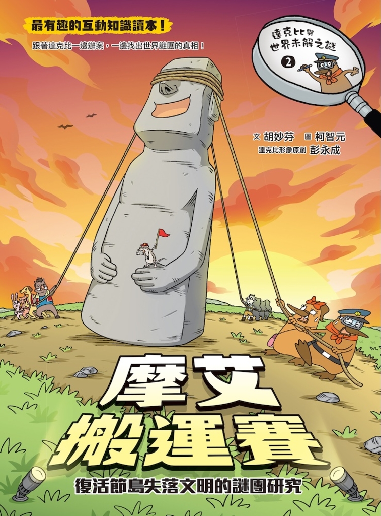 這一回,邀請你擔任達克比的助手,運用科學辦案的精神,從不同參賽隊伍中找出破案線索,學習判讀與驗證線索的真偽。快跟著達克比一起抽絲剝繭,在偵破案件的同時,也揭開摩艾石像如何移動的世紀大謎團吧!