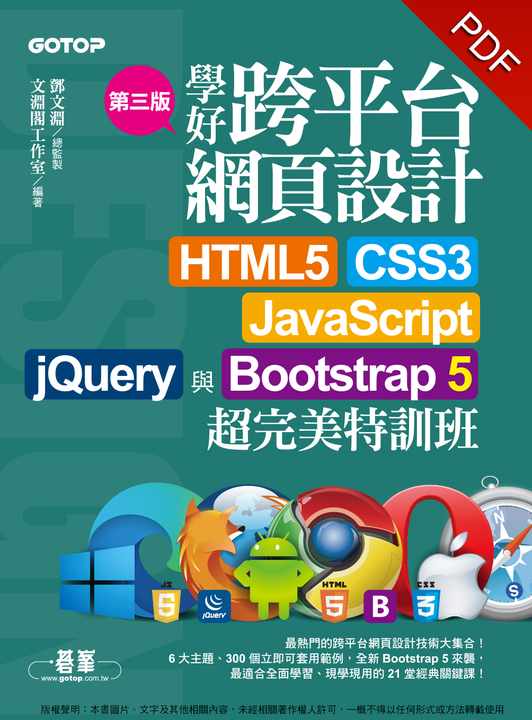 學好跨平台網頁設計(第三版)--HTML5、CSS3、JavaScript、jQuery與Bootstrap 5超完美特訓班