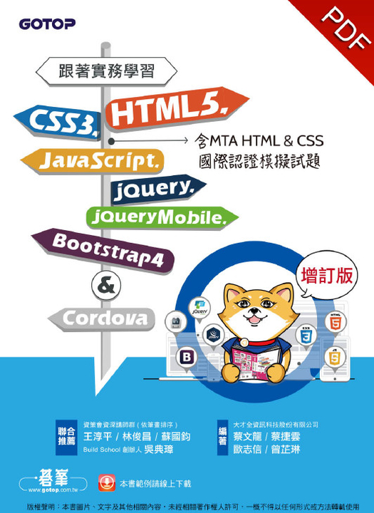 跟著實務學習HTML5、CSS3、JavaScript、jQuery、jQuery Mobile、Bootstrap 4&Cordova-