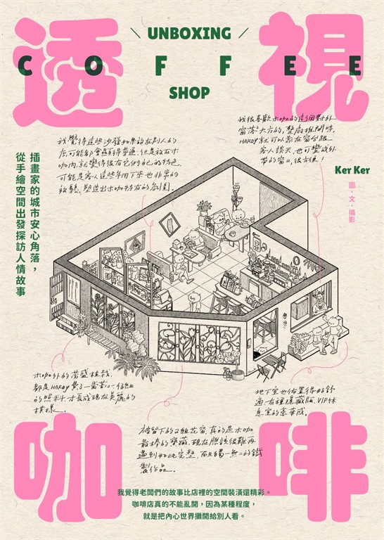 這次挑選了38間Ker Ker心中的寶藏店,可能不是最新、最好拍或最有話題,多半是一人店,或由情侶夫妻一起經營的獨立小店。第一手採訪老闆們的創業血淚,浪漫與現實交織的真心話,對於咖啡、空間及經營的想法。佐以精細的手繪透視插圖和氛圍感滿滿的照片,為每間咖啡店留下各種可愛的空間細節。