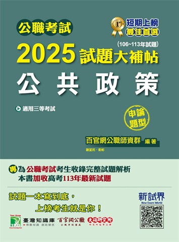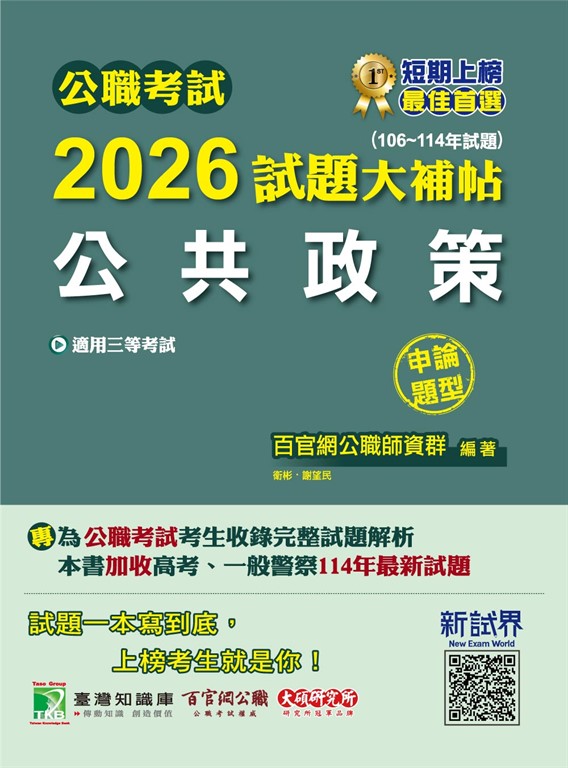 公職考試2026試題大補帖【公共政策】(106~114年試題)(申論題型)[適用三等/警察特考、高考、地方特考](CK5112)