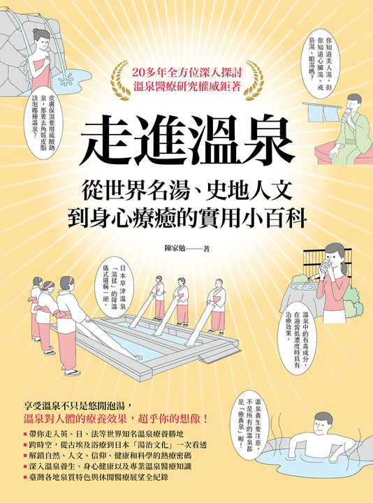 本書以最新的溫泉醫療專業知識為主,包含了英、日、法、義、德等國際相關研究報告,期望溫泉愛好者能以較宏觀的角度與視野,來看這門獨特學科的普世價值。