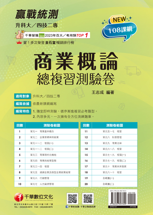 ‧商業概論[歷年試題+模擬考](升科大四技)千華
